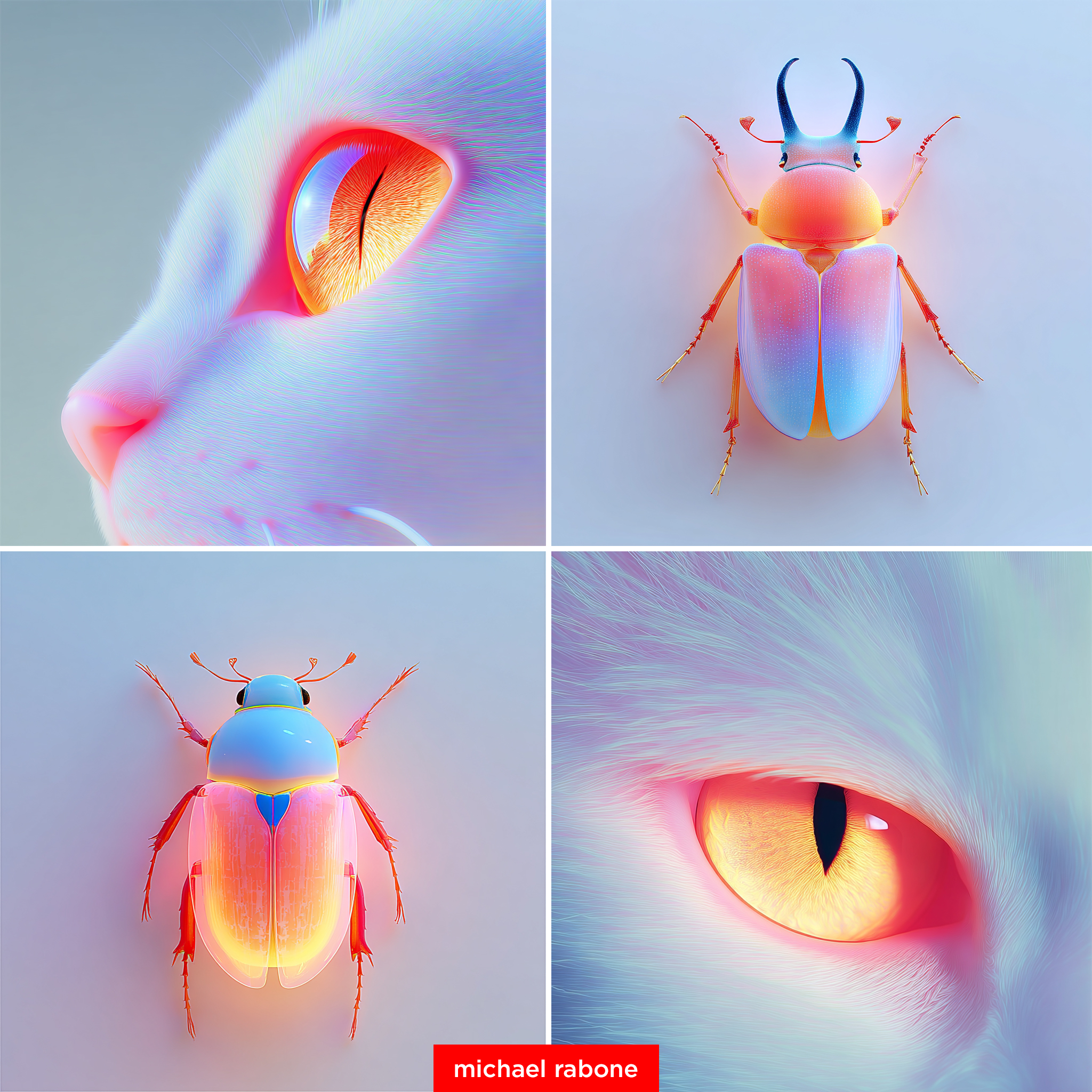 Exploring Style --sref 1632499533 I love these colours Super macro close-up of pupil and iris of a cat --ar 1:1 --quality 4 --raw --sref 1632499533 --sw 100 --stylize 300 --v 7 Hercules beetle, bright vivid colours --ar 1:1 --raw --sref 1632499533 --sw 100 --stylize 300 --v 7